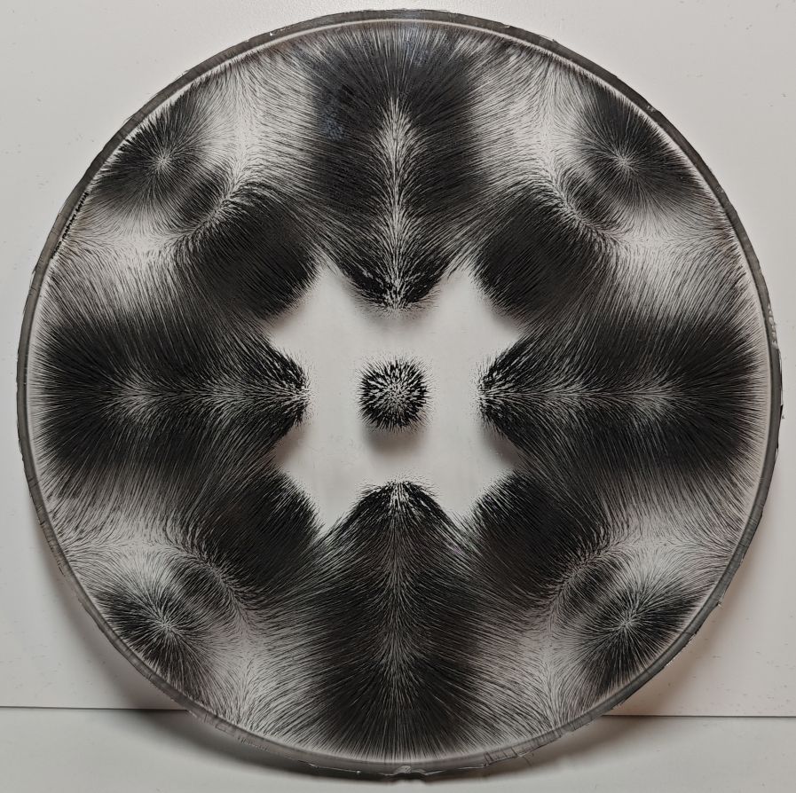 So I made magnetic field mandala bigger and after a while, I had the idea to use the light to highlight the effect.