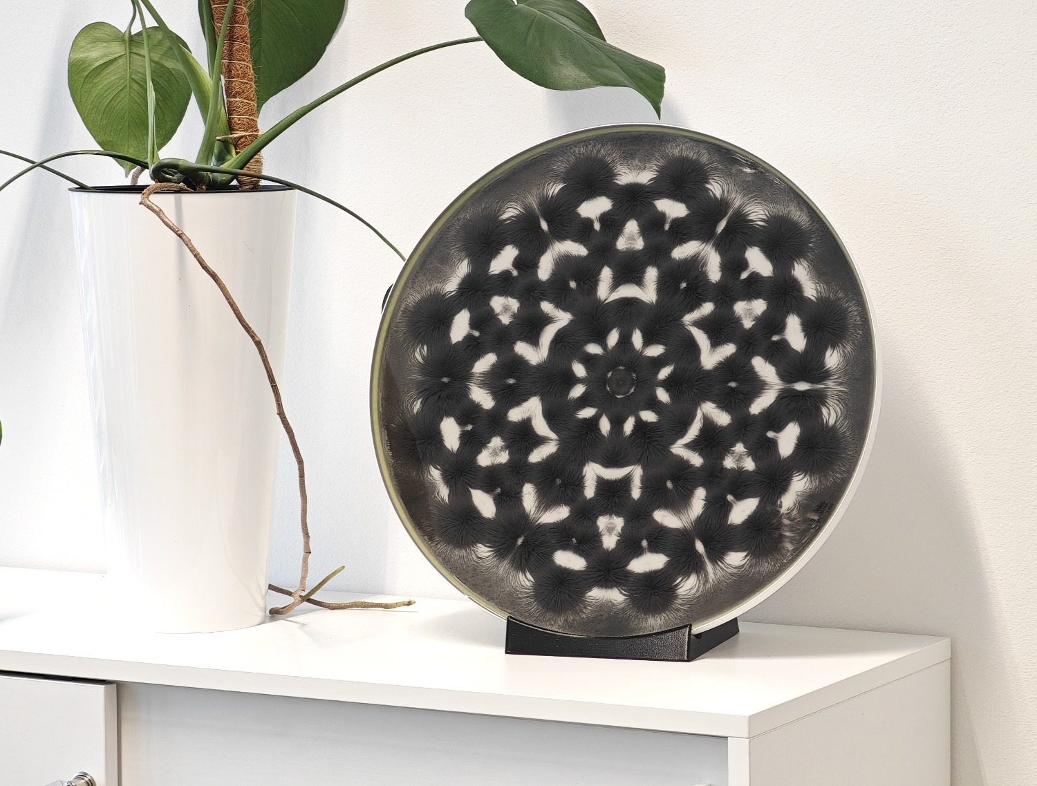 Fast forward 6 years, I started to arrange magnetic fields into patterns resembling mandalas and pour resin with magnetic particles into the form over it.